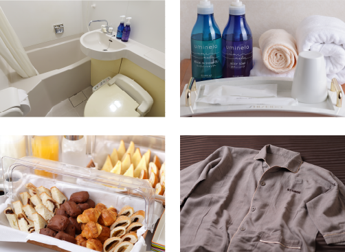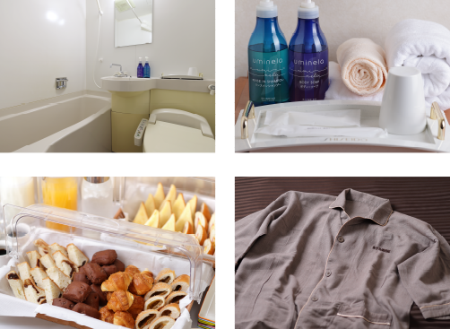 ビジネスホテルにでは数少ない和室を完備。ビジネスや観光の疲れを、畳のお部屋なら足を伸ばしてゆっくりと癒してくれます。客室内ではWi-Fiを完備しており全室無料インターネット接続がご利用いただけます。 またご希望のお客様は有線LAN接続もご利用いただけます。冷蔵庫も全室完備です。