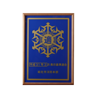 消防法令等の表示基準に3年間継続して適合していると認められる、「表示マーク(金)」を当ホテルは消防機関から交付されております。より高い防火意識と施設の安全性を証明するものです。